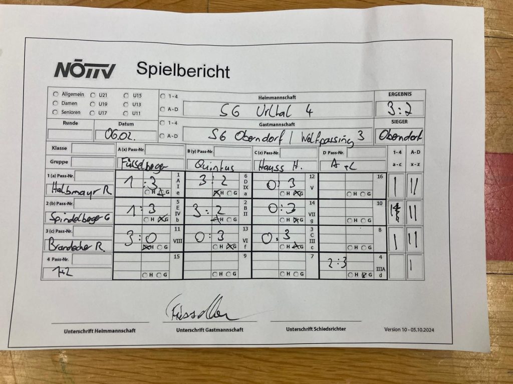 Füsselberger 2/1; Quintus 1/2; Hauss 3:0; Doppel für SGOW3
